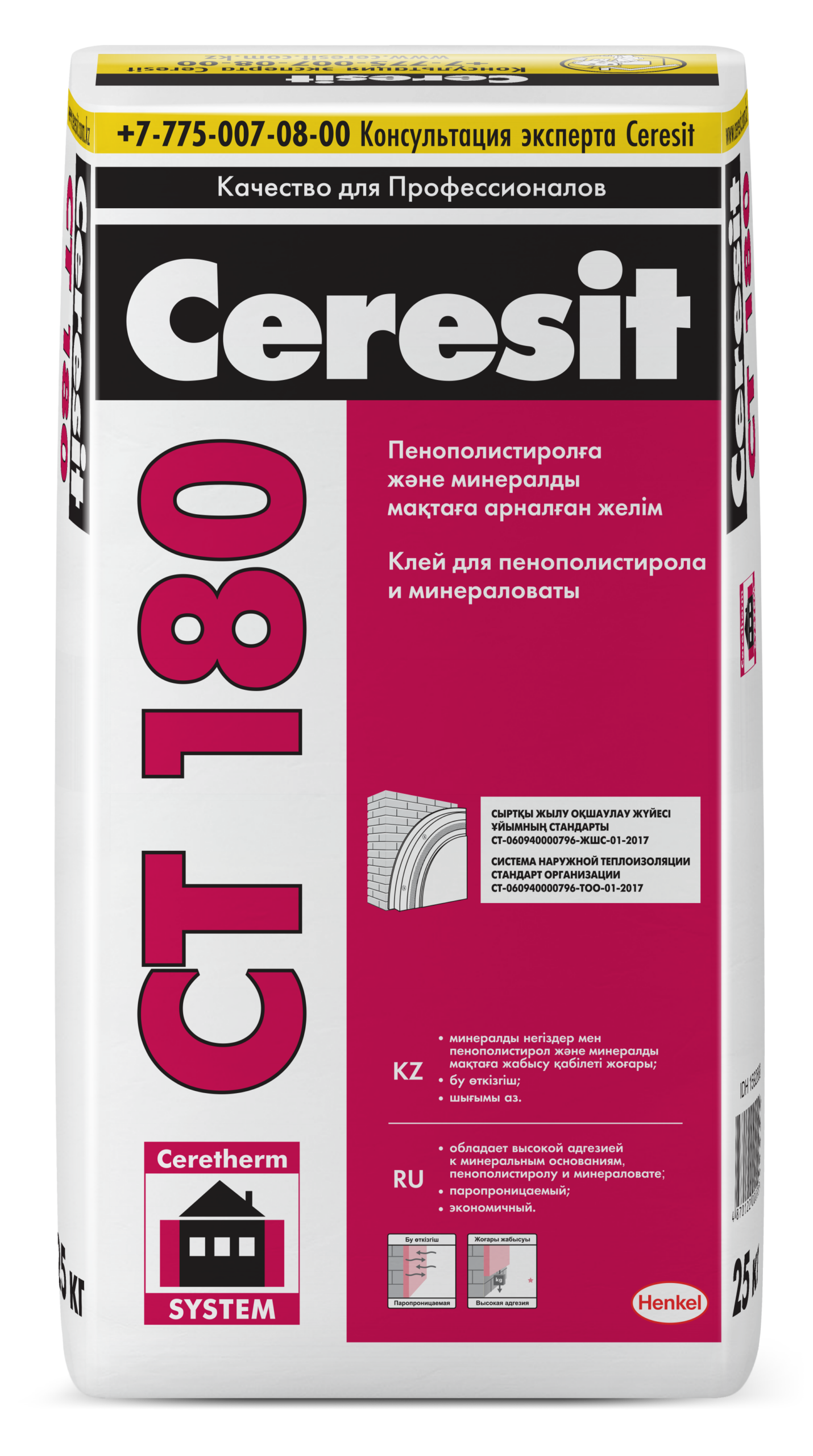 Ceresit CT 180 Клей для пенополистирола и минераловаты, 25 кг