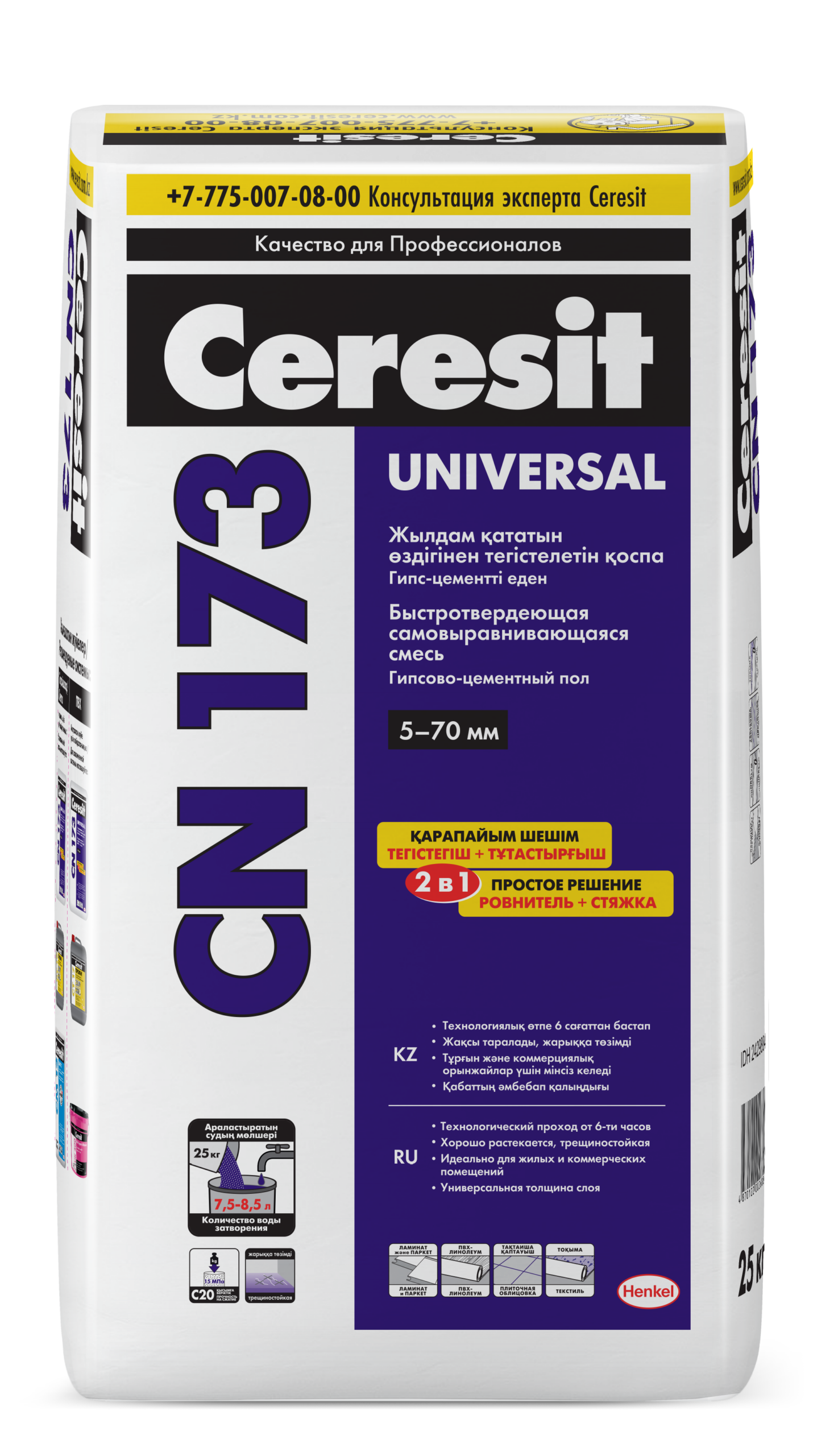 Ceresit СN 173 Высокопрочная самовыравнивающаяся смесь (толщина слоя 5-70 мм), 25 кг