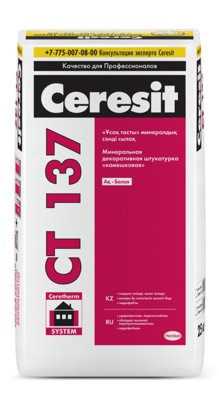 Ceresit CT 35 Минеральная декоративная штукатурка фактура «Короед», зерно 2,5 мм, 25 кг